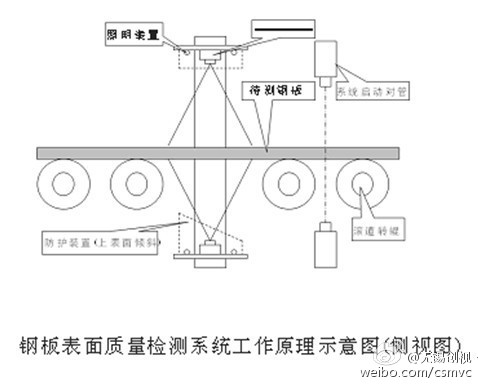 设备安(an)装在(zai)钢(gang)(gang)板(ban)(ban)(ban)(ban)生产线的冷床(chuang)出口处(chu),龙门(men)(men)框(kuang)架沿辊(gun)道宽(kuan)度(du)方(fang)向(xiang)(xiang)安(an)置(zhi)5台(tai)CCD数(shu)字摄像(xiang)机及(ji)高(gao)亮(liang)度(du)LED照明(ming)(带有防(fang)护(hu)(hu)装置(zhi)),完(wan)成(cheng)对(dui)(dui)(dui)钢(gang)(gang)板(ban)(ban)(ban)(ban)上表面(mian)的成(cheng)像(xiang)摄影纪录和(he)缺(que)(que)陷(xian)(xian)在(zai)宽(kuan)度(du)方(fang)向(xiang)(xiang)上的定位(wei)。同样,龙门(men)(men)框(kuang)架结构的下(xia)部分位(wei)于辊(gun)道下(xia)方(fang),沿辊(gun)道宽(kuan)度(du)方(fang)向(xiang)(xiang)也安(an)置(zhi)5台(tai)CCD数(shu)字摄像(xiang)机及(ji)高(gao)亮(liang)度(du)LED照明(ming)(带有防(fang)护(hu)(hu)装置(zhi)),对(dui)(dui)(dui)钢(gang)(gang)板(ban)(ban)(ban)(ban)下(xia)表面(mian)进(jin)行充(chong)分照明(ming),保证视场内ꦆ照度(du)均匀(yun),不形成(cheng)阴影区域,完(wan)成(cheng)对(dui)(dui)(dui)钢(gang)(gang)板(ban)(ban)(ban)(ban)下(xia)表面(mian)的成(cheng)像(xiang)摄影纪录和(he)缺(que)(que)陷(xian)(xian)在(zai)宽(kuan)度(du)方(fang)向(xiang)(xiang)上的定位(wei)。靠近分段剪方(fang)向(xiang)(xiang)距(ju)龙门(men)(men)框(kuang)架结构1.5米处(chu)安(an)置(zhi)LED红(hong)外对(dui)(dui)(dui)管,完(wan)成(cheng)对(dui)(dui)(dui)钢(gang)(gang)板(ban)(ban)(ban)(ban)头(tou)部的探测,承(cheng)担系统的启动和(he)休眠功能♈。在(zai)龙门(men)(men)框(kuang)架结构安(an)置(zhi)激光测速仪,完(wan)成(cheng)对(dui)(dui)(dui)钢(gang)(gang)板(ban)(ban)(ban)(ban)运动速度(du)的测量,承(cheng)担钢(gang)(gang)板(ban)(ban)(ban)(ban)表面(mian)缺(que)(que)陷(xian)(xian)在(zai)长度(du)方(fang)向(xiang)(xiang)的定位(wei)。